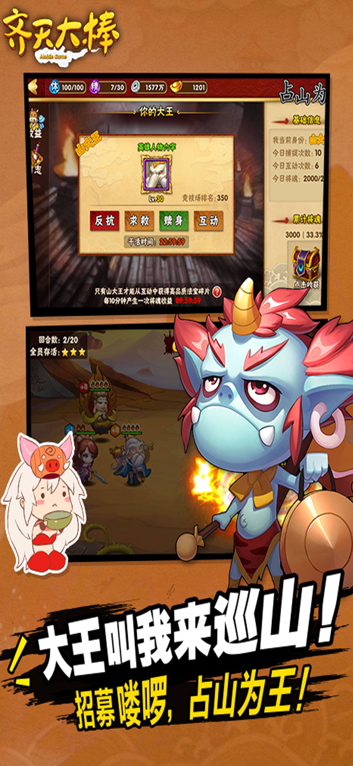 《齊天大棒》是一款A(yù)RPG角色扮演類手機(jī)游戲。宏大的世界觀,將上古神話背景與游戲體驗(yàn)做了完美的結(jié)合,只有不斷歷練自己才能通過各種挑戰(zhàn),順利擊殺精英、逼退對手,獲得珍稀獎(jiǎng)勵(lì)、給力裝備,為征戰(zhàn)之途做好萬全的準(zhǔn)備。豐富多樣的裝備,特效絢麗的技能,酣暢淋漓的戰(zhàn)斗一定會(huì)讓你有絕佳的體驗(yàn)。
